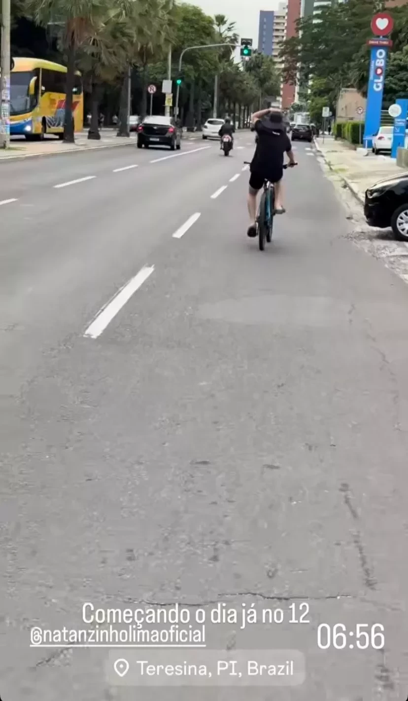 Nattanzinho Lima de bike em Teresina. Foto: Instagram
