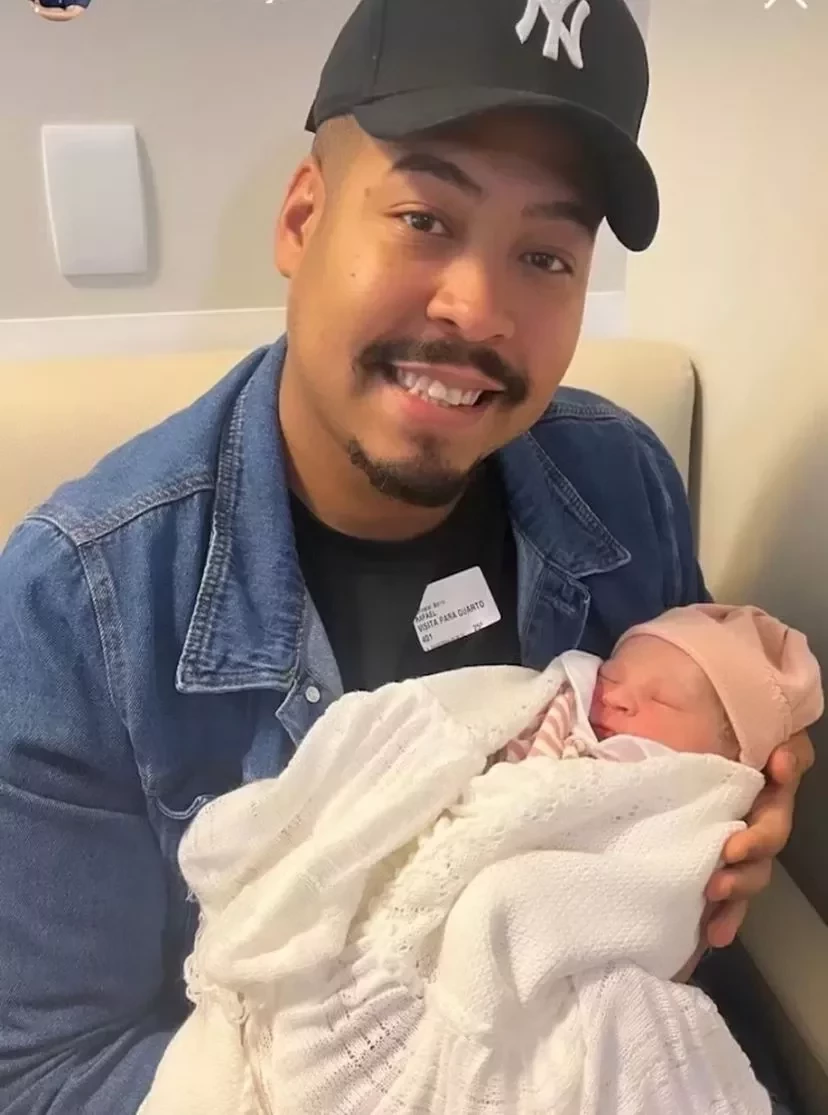O anúncio foi feito por Rafael Phelipe, o Rafael Molejin, que também é filho do artista, nos Stories do Instagram nesta terça-feira (4). "Neném do dindo", escreveu ele na legenda da foto em que segura a bebê no colo.