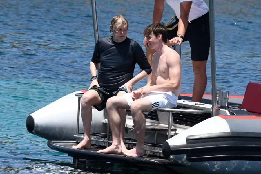 No clique feito por um paparazzi, Paul apareceu ao lado do neto Elliot Donald, de 22 anos, que chamou atenção por sua beleza e boa forma. Os dois foram clicados sentados na beira no iate enquanto conversavam e tomavam sol.