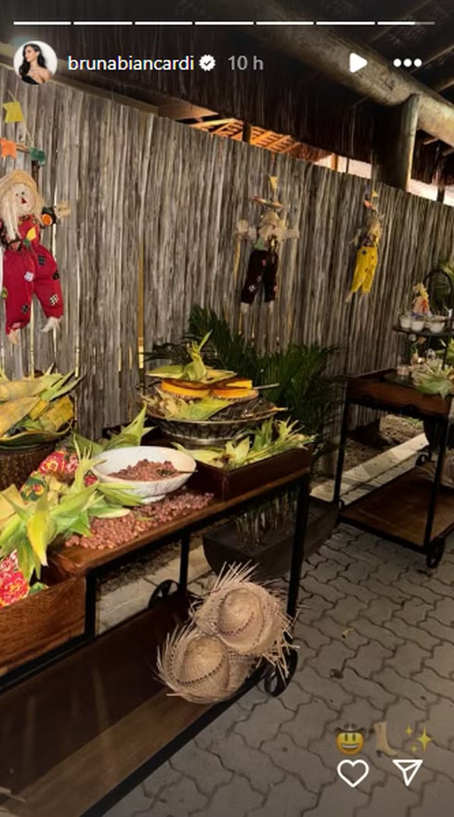 Bruna Biancardi, que está grávida de Mel, sua segunda filha com o jogador, também participou do evento e compartilhou registros da decoração junina. Ela é mãe de Mavie, outra filha do atleta, que também tem Helena e Davi Lucca, frutos de relacionamentos anteriores.
