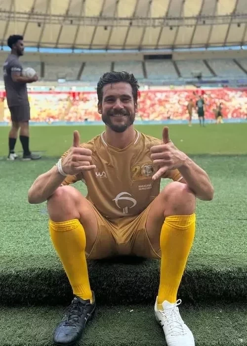 Nicolas Prattes foi um dos destaques nas redes sociais após sua participação no “Jogo das Estrelas”, realizado neste domingo (29), no Maracanã, Rio de Janeiro. O ator chamou atenção dos internautas por conta do volume em seu short, o que gerou uma série de comentários divertidos.