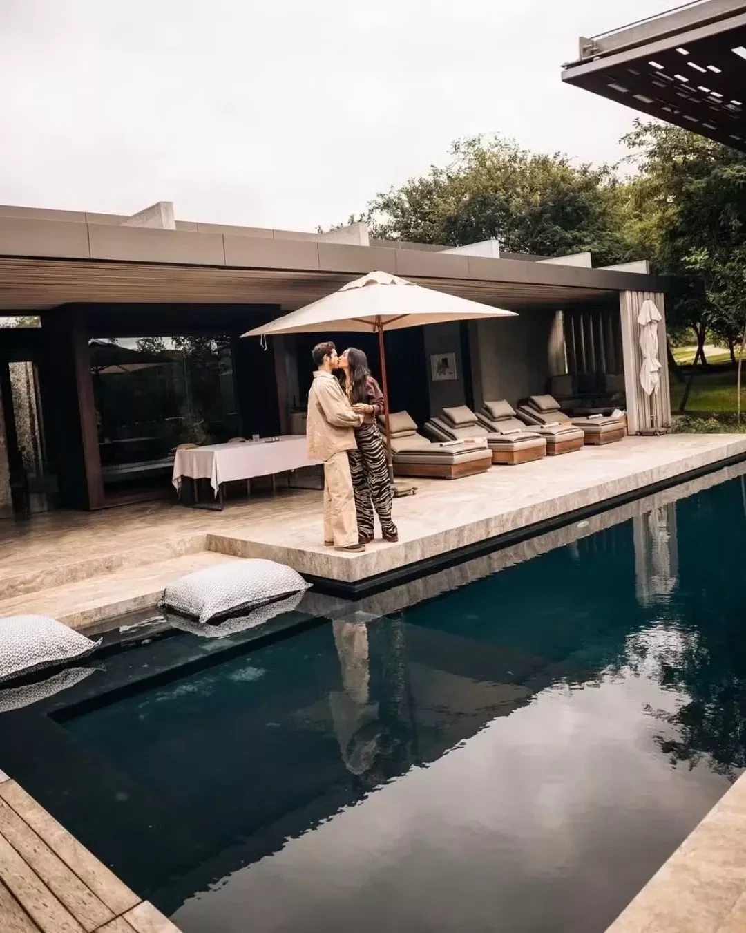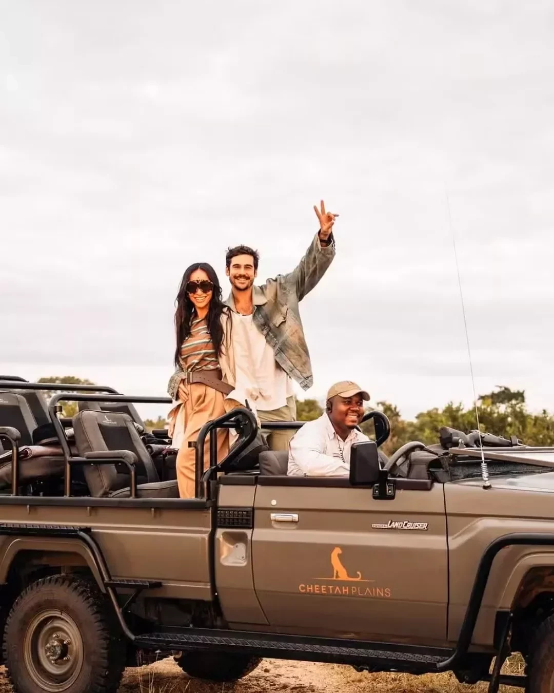 Para a estadia na África do Sul, a escolha foi pelo safári sustentável Cheetah Plains, que dispõe de três vilas privativas com área de 640m² cada. Cada uma dessas vilas inclui sala de estar, sala de jantar, espaço de entretenimento, suítes individuais, além de uma área externa equipada com lareira e piscina aquecida.