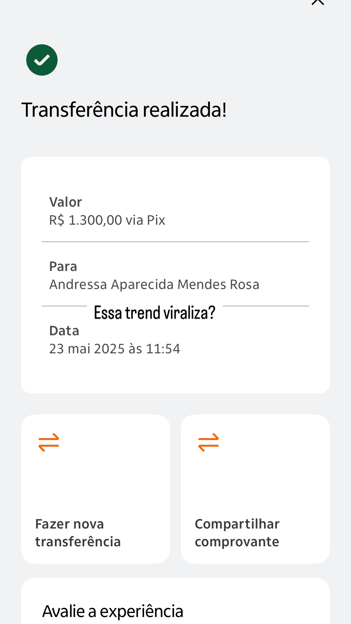 Logo em seguida, o artista publicou a foto de um comprovante de pagamento, mostrando que doou R$ 1.300. "Essa trend viraliza?", perguntou o artista.