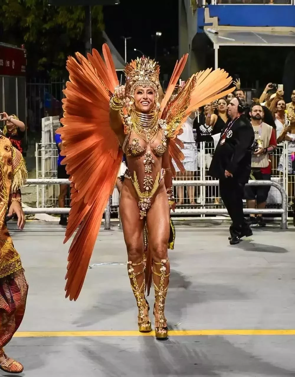 A apresentadora de 44 anos, revelou sua fantasia na segunda noite de desfiles do Grupo Especial do Carnaval de São Paulo. Neste ano, ela comemora 21 anos que faz parte da escola de samba.