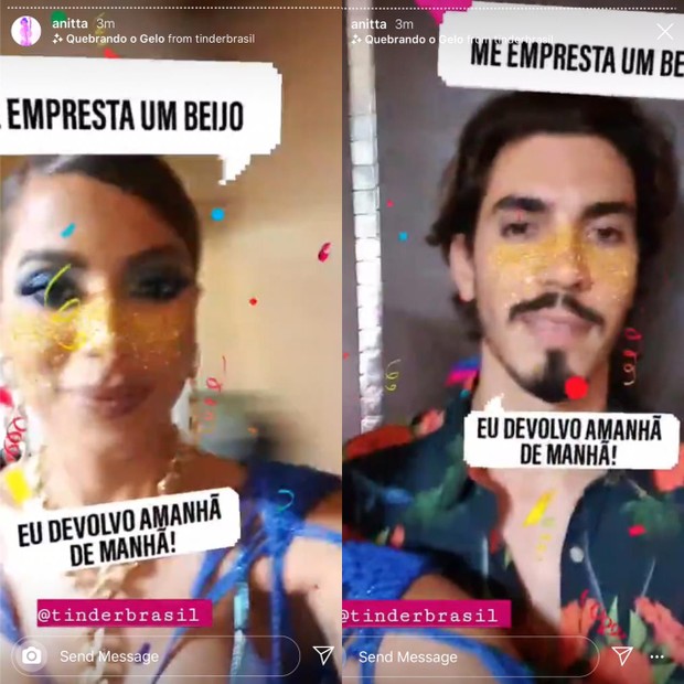 A cantora levou seu novo affair Gabriel David para curtir a festa e até arriscou um filtro onde mostra a porcentagem de quanto o casal combina. No caso da dupla, o número alcançado foi de 94% e o app disse que eles vão 'durar mais que o Carnaval'.