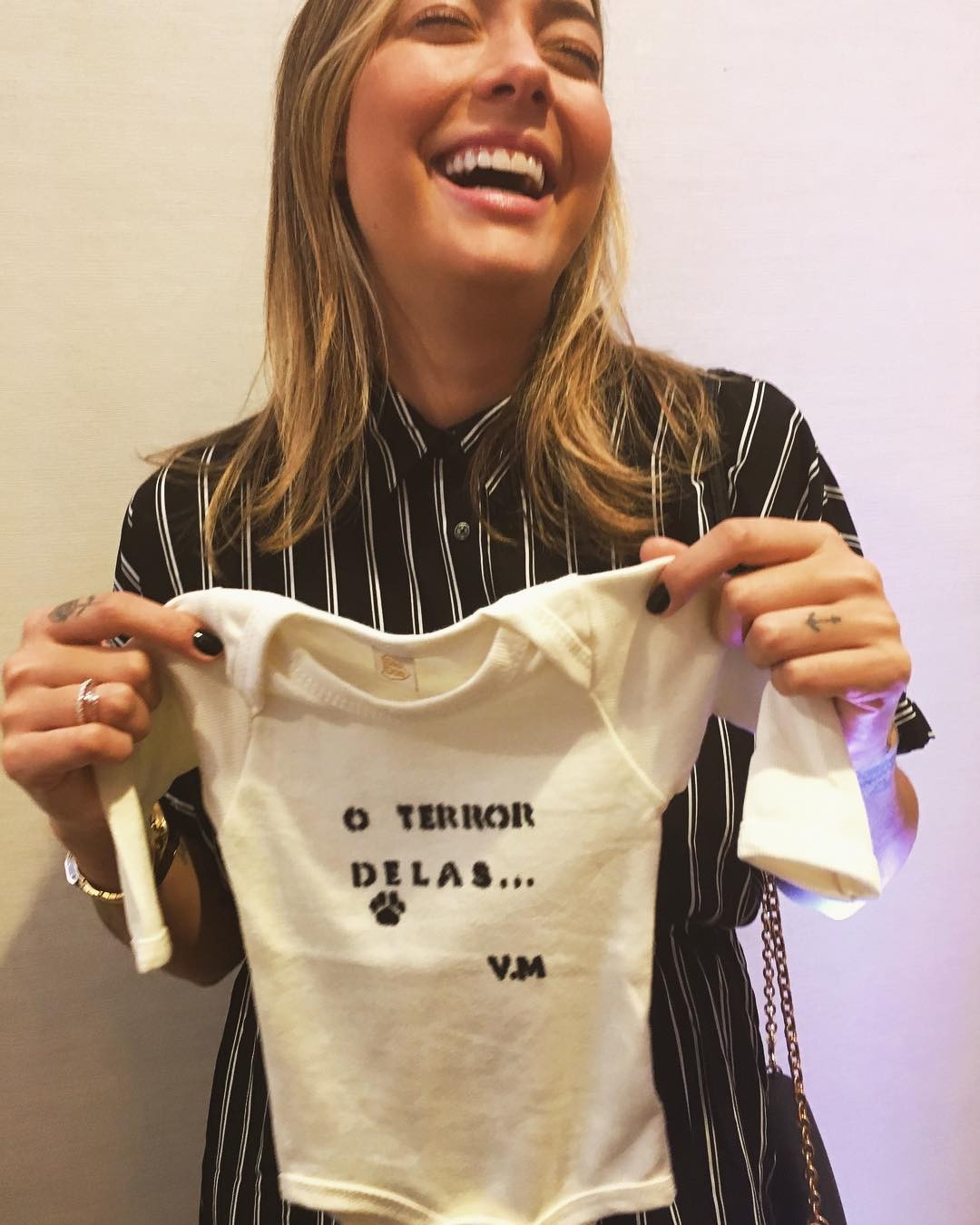Na peça, a frase: "O terror delas...", com as iniciais de Vinicius. "Você deve estar pensando: Que pai louco...Vai casar, ter filho e ta falando que é o terror delas? Errou! To passando o bastão pra ele. Pro Valentin", escreveu.