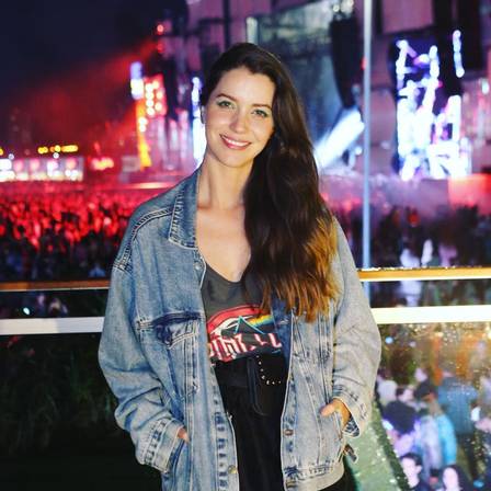 Nathalia Dill foi conferir a segunda noite de shows do Rock in Rio na companhia do noivo, que se recusou a posar com a atriz para as fotos. Nathalia aparece sem ele em diversos registros desta noite do festival.
