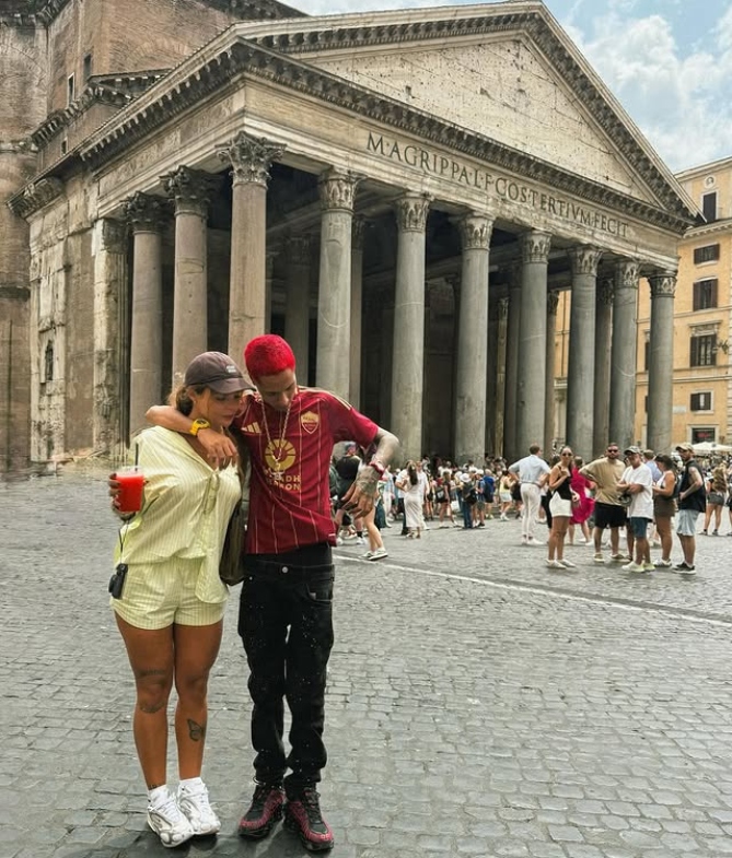 Fernanda Valença, noiva de Oruam, de 24 anos, usou suas redes sociais nesta terça-feira (17) para compartilhar registros de uma viagem para a Itália com o noivo. O casal passou o Dia dos Namorados com a influenciadora em frente à Torre Eiffel, em Paris, França, e conheceu as atrações turísticas mais conhecidas de Roma durante a tarde: o Coliseu e o Pantheon.