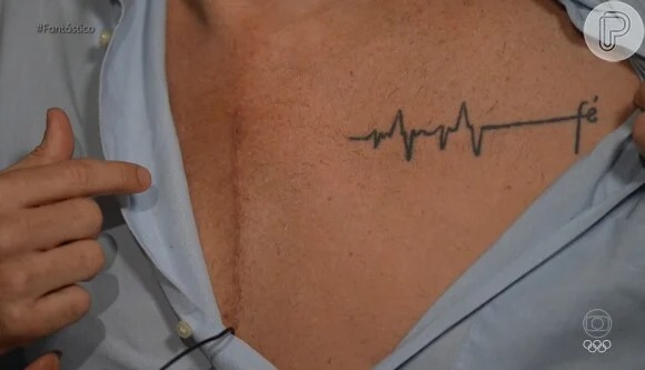 A tatuagem de Otaviano Costa simula as batidas do coração com a palavra fé após uma parada. Foto: Reprodução/FantásticoApós o retorno para casa, Otaviano contou ao Fantástico que sentiu alívio ao reencontrar família e retomou o cotidiano aos poucos. Ele também disse que decidiu tornar sua recuperação pública para alertar outras pessoas sobre a importância de fazer check-ups regulares, mesmo na ausência de sintomas.