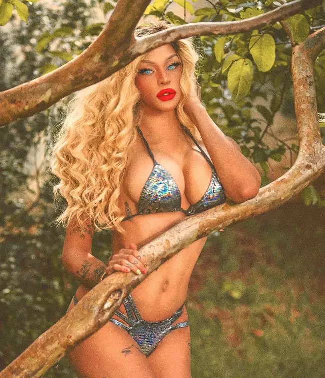 De cabelos azuis, roupa estampada com sayjins do anime Dragon Ball Z e lentes de contato que deixaram seus olhos completamente negros, a musa brasileira mostrou que está disposta a chegar aonde nenhum homem, mulher ou drag chegou antes.