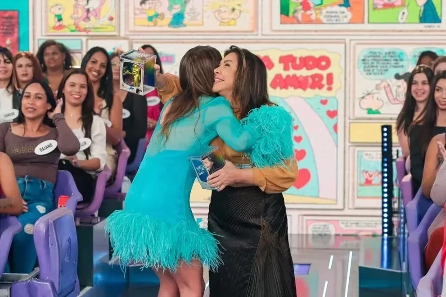 Patricia Abravanel viveu um momento muito especial ao lado de Mônica Sousa, filha do cartunista Mauricio de Sousa, que inspirou uma das personagens mais famosas das histórias em quadrinhos do Brasil, a Mônica. Ela entregou nas mãos da apresentadora uma pintura exclusiva, feita pelo pai, de 89 anos, em homenagem a Silvio Santos.