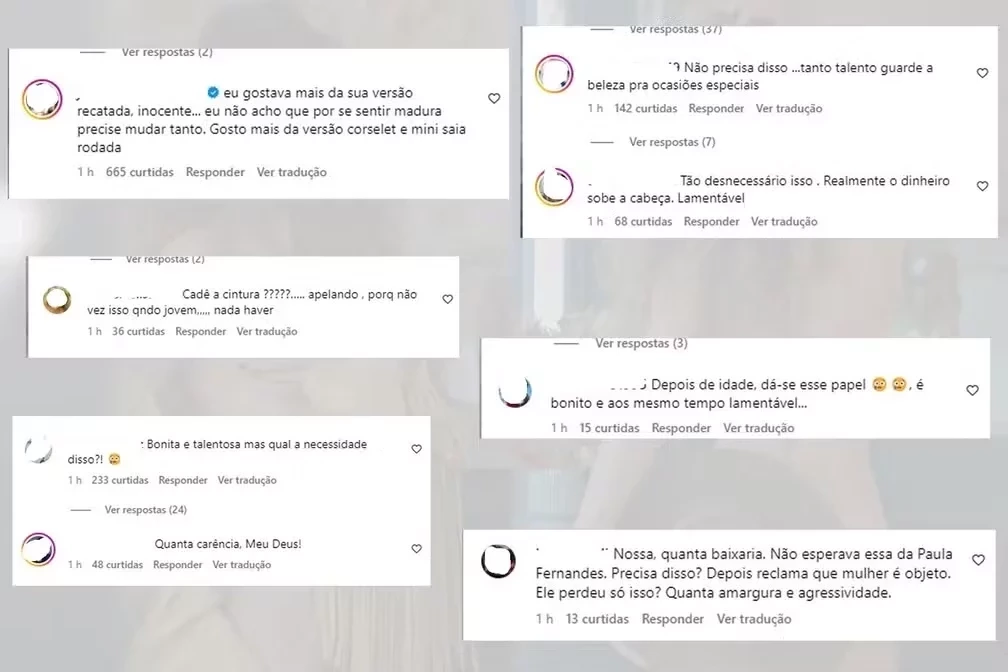 Com a divulgação dessas imagens, a cantora de 39 anos enfrentou uma enxurrada de críticas. Nos comentários de suas redes sociais, muitos seguidores expressaram desaprovação com mensagens como "eu gostava mais da sua versão recatada", "quanta baixaria", "desnecessário" e "você não precisa disso".