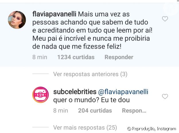 “Mais uma vez as pessoas achando que sabem de tudo e acreditando em tudo que leem por aí. Meu pai é incrível e nunca me proibiria de nada que me fizesse feliz”, escreveu.