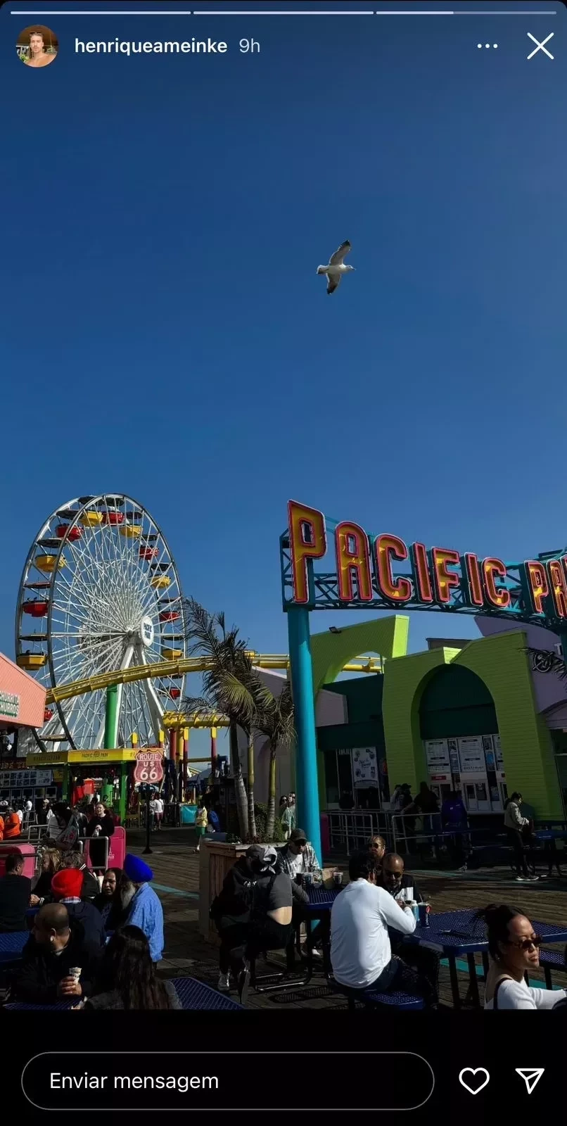 Na segunda-feira (21), o DJ Pedro Sampaio, de 26 anos, compartilhou stories em seu Instagram, mostrando momentos de diversão em um parque de diversões no píer de Santa Monica, Califórnia (EUA), ao lado de seu namorado, o modelo Henrique Meinke.