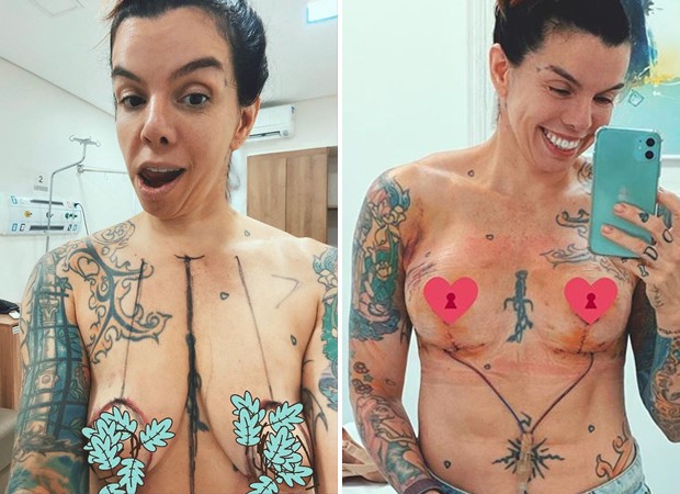 Penélope Nova usou seu Instagram para mostrar suas cicatrizes e o resultado da cirurgia que fez recentemente para levantar os seios. Na legenda, a apresentadora de 46 anos fez um breve relato sobre sua recuperação, contando já não estar sentindo tanto incômodo ou dor. "Diria que o meu grau de dor máximo não chegou nem no 5 - ou seja, tá pra pra grau de incômodo mesmo. E agora, sem o dreno, deve seguir só uma sensação dolorida na região, que vai diminuir a cada dia", escreveu em parte do texto. As informações são da Quem.