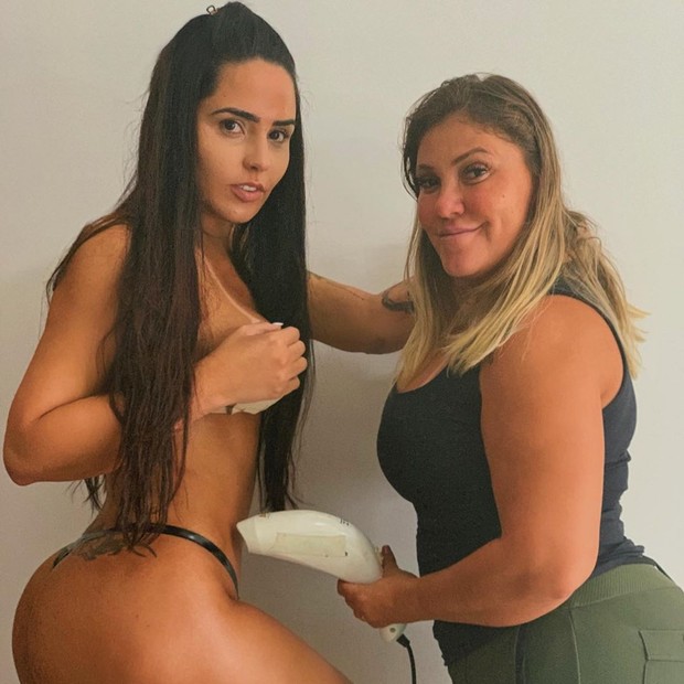 Minutos antes de entrar na sessão de bronzeamento artificial, em um spa em Jacarepaguá, no Rio de Janeiro, ela posou pra foto com um modelo bicolor de tirinhas que contou ser exclusivo. "Me preparando para entrar na máquina com o meu modelo de biquíni que é exclusivo", escreveu.