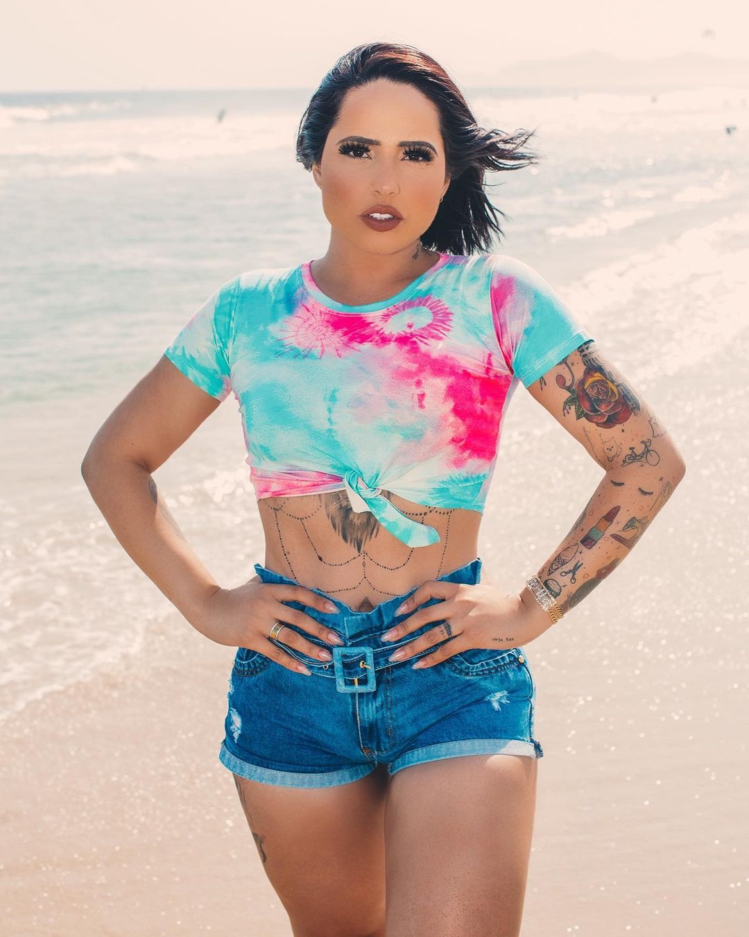 Neste domingo (25), a musa postou as primeiras imagens criticados, em que faz propaganda para uma loja de roupas. A cantora e influencer aparece em poses na praia e vestida com uma camisa com estampa de Tie Dye. Mas o que chamou atenção mesmo foi o rosto.