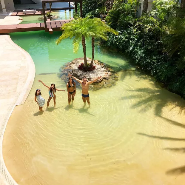 Ainda que a beleza da família seja um atrativo importante, foi a piscina - com direito a peixinhos de verdade - que acabou roubando toda a cena da postagem e deixou os internautas, incluindo Jojo Todynho, Carlinhos Maia, Mariana Rios, MC Guimê e Karina Sato completamente impactados.