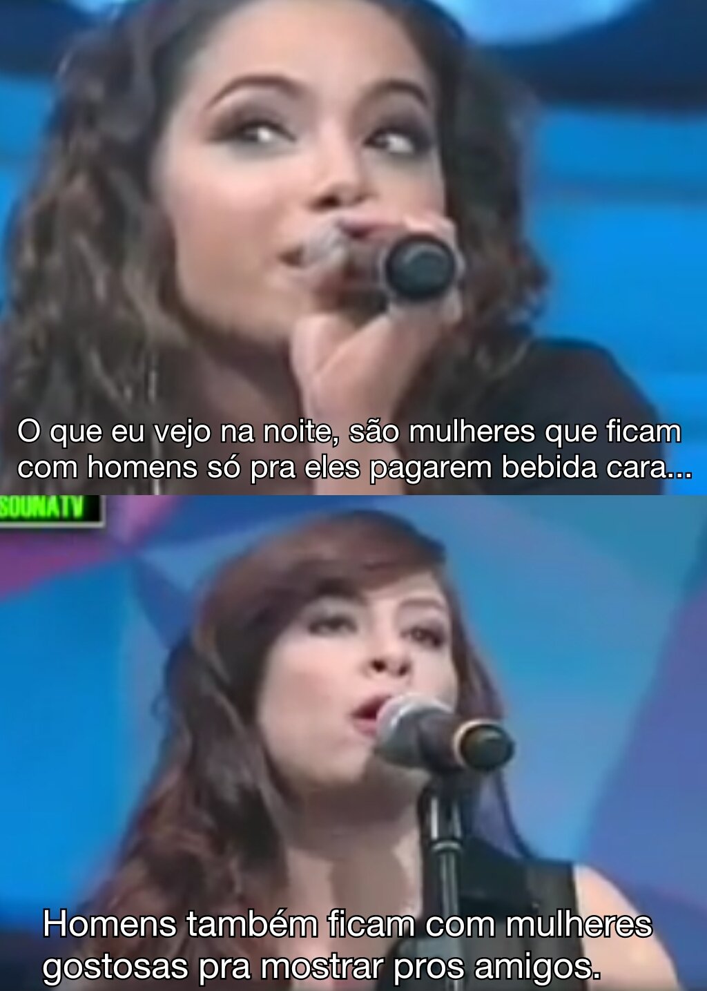 Na ocasião, Anitta falava sobre "a mulher ter de se dar o respeito", e Pitty rebateu falando que entende-se de forma diferente o que é um "homem de respeito" e uma "mulher de respeito" na sociedade.