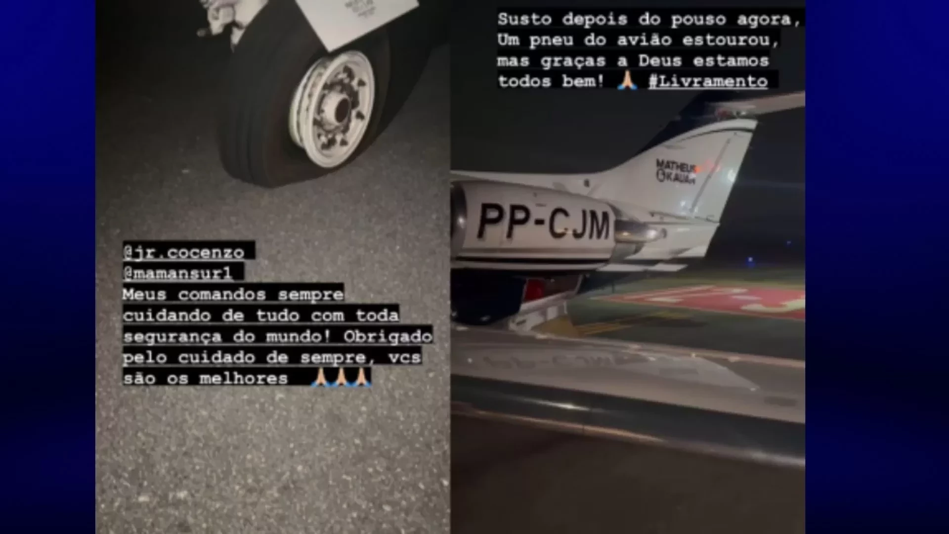 Neste domingo (18), Matheus e Kauan vivenciaram um grande susto quando o jatinho da dupla pousou em um novo destino. Embora o voo tenha transcorrido sem problemas, o pneu da aeronave estourou logo após a aterrissagem.