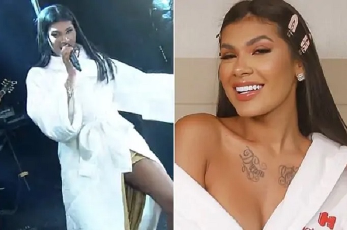 Pocah entrou no palco do show final do BBB 21 usando um roupão por cima do look principal. O público ficou sem entender e foi atrás de explicação.