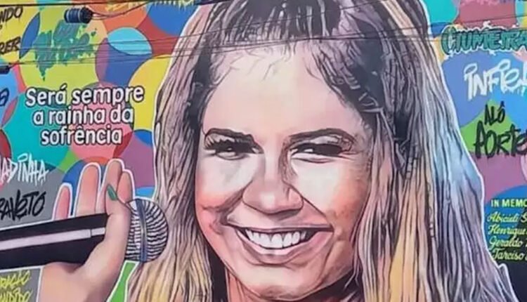 O mural, em homenagem a cantora Marília Mendonça, que está em Sáo Paulo, amanheceu pixado com pornogafia