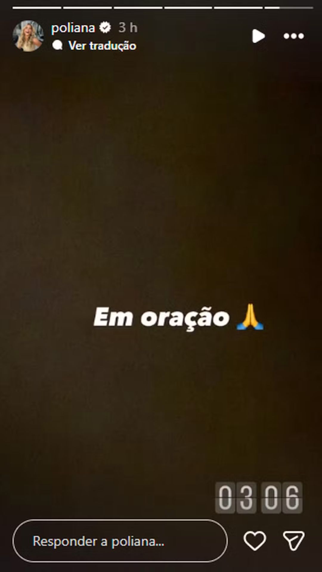 Nos Stories do Instagram, a esposa do cantor Leonardo escreveu apenas: "Em oração". Além disso, Poliana manteve no perfil uma foto em que aparece ao lado do marido, do filho e da família de Ana Castela durante a celebração do Natal, o que chamou a atenção dos seguidores.