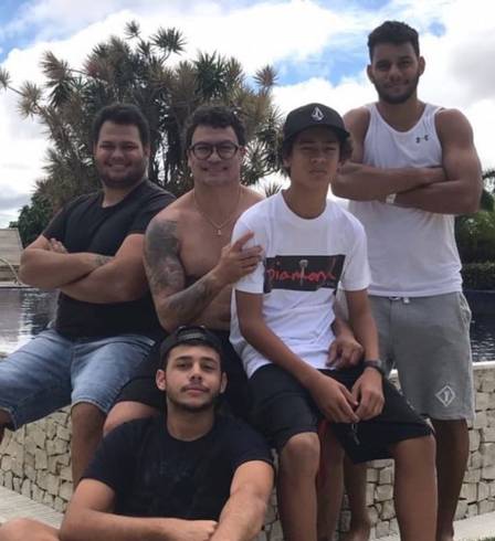 Popó com quatro de seus seis filhos; Juan está sentado no chão, de boné Foto: reproduçlão