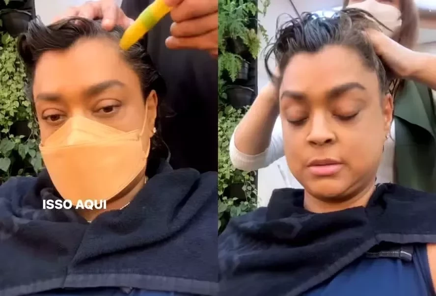 Preta explicou que o tratamento incluía um estimulador da circulação do couro cabeludo para promover o crescimento saudável dos fios, além de mencionar que havia removido o aplique anterior.
