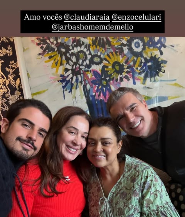 Preta Gil, de 50 anos, usou suas redes sociais para compartilhar uma foto ao lado de Claudia Raia, Enzo Celulari e Jarbas Homem de Mello nesta quinta-feira (22). O registro foi publicado diretamente de Nova York, nos Estados Unidos, onde está realizando um tratamento contra o câncer.