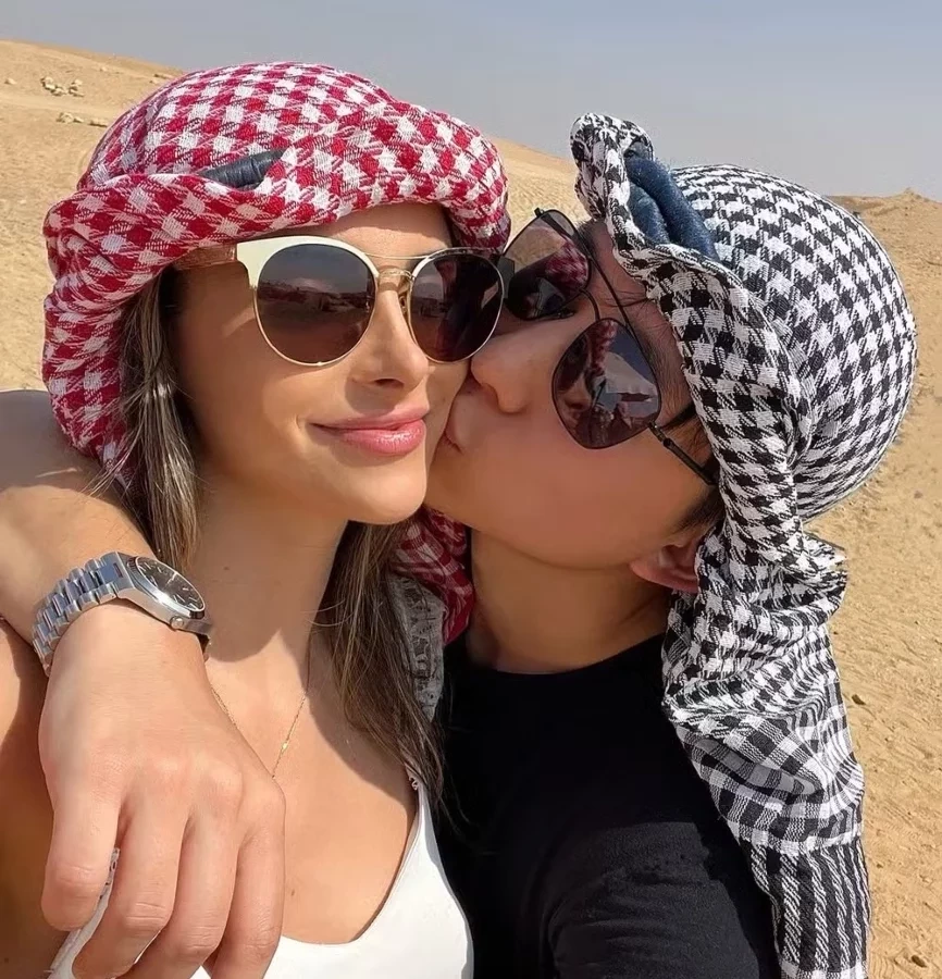 O casal apareceu em momentos românticos durante viagens ao Egito, neve, deserto e um destino paradisíaco. Nat também foi fotografada ao lado de Jake, filho de Pyong com a ex-esposa Sammy Sampaio, com quem ele se separou em 2021 após polêmicas.