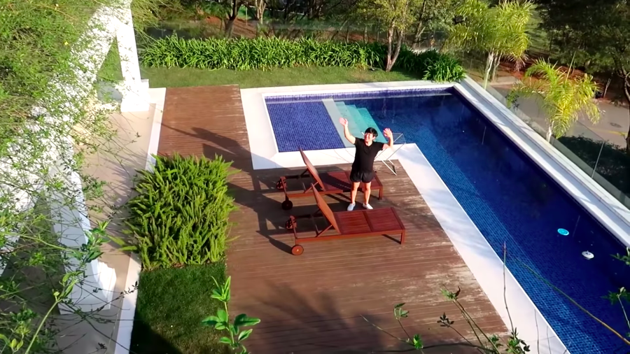 Recém-comprada, a casa ainda tem poucos móveis e objetos. O processo de decoração e pequenas reformas será todo mostrado no canal do youtuber, que pediu até sugestões para os seus seguidores sobre o que fazer em alguns cômodos, como um porão localizado perto da piscina.