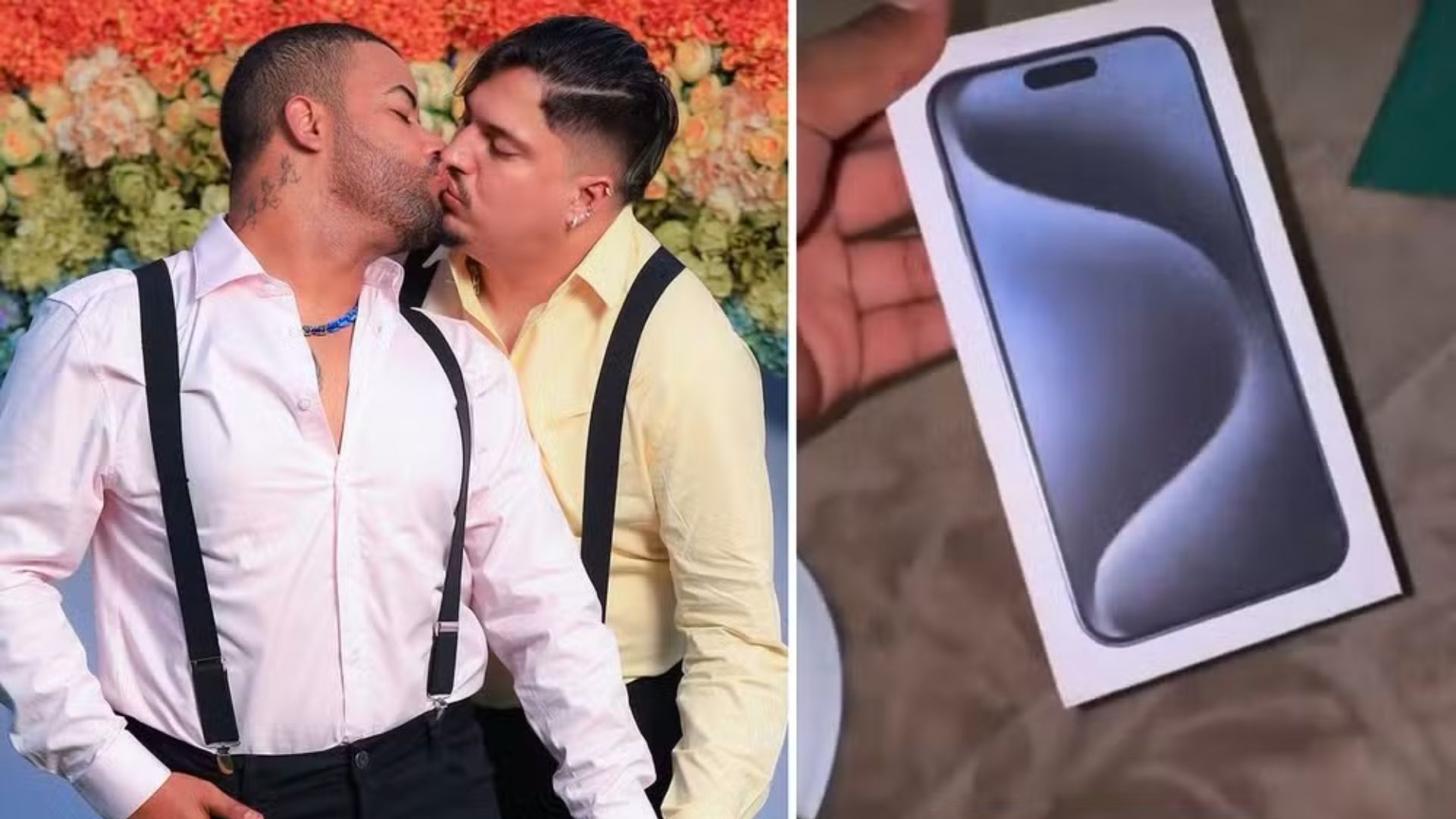 Uma parte dos convidados que recebeu o convite de casamento de Hytalo Santos com seu parceiro, Euro, descobriu que havia ganhado um iPhone 15 Pro Max, aparelho avaliado em torno de R\$ 10 mil. A cerimônia teve como uma das madrinhas a advogada e influenciadora Deolane Bezerra.