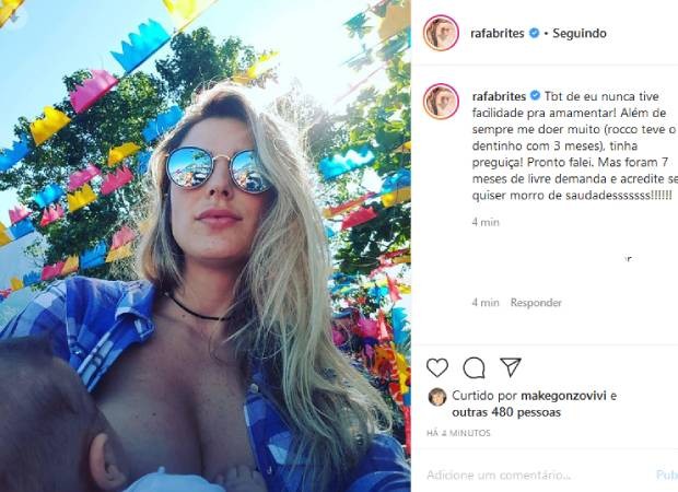 "Eu nunca tive facilidade pra amamentar! Além de sempre me doer muito (Rocco teve o primeiro dentinho com 3 meses), tinha preguiça! Pronto, falei", declarou ela.