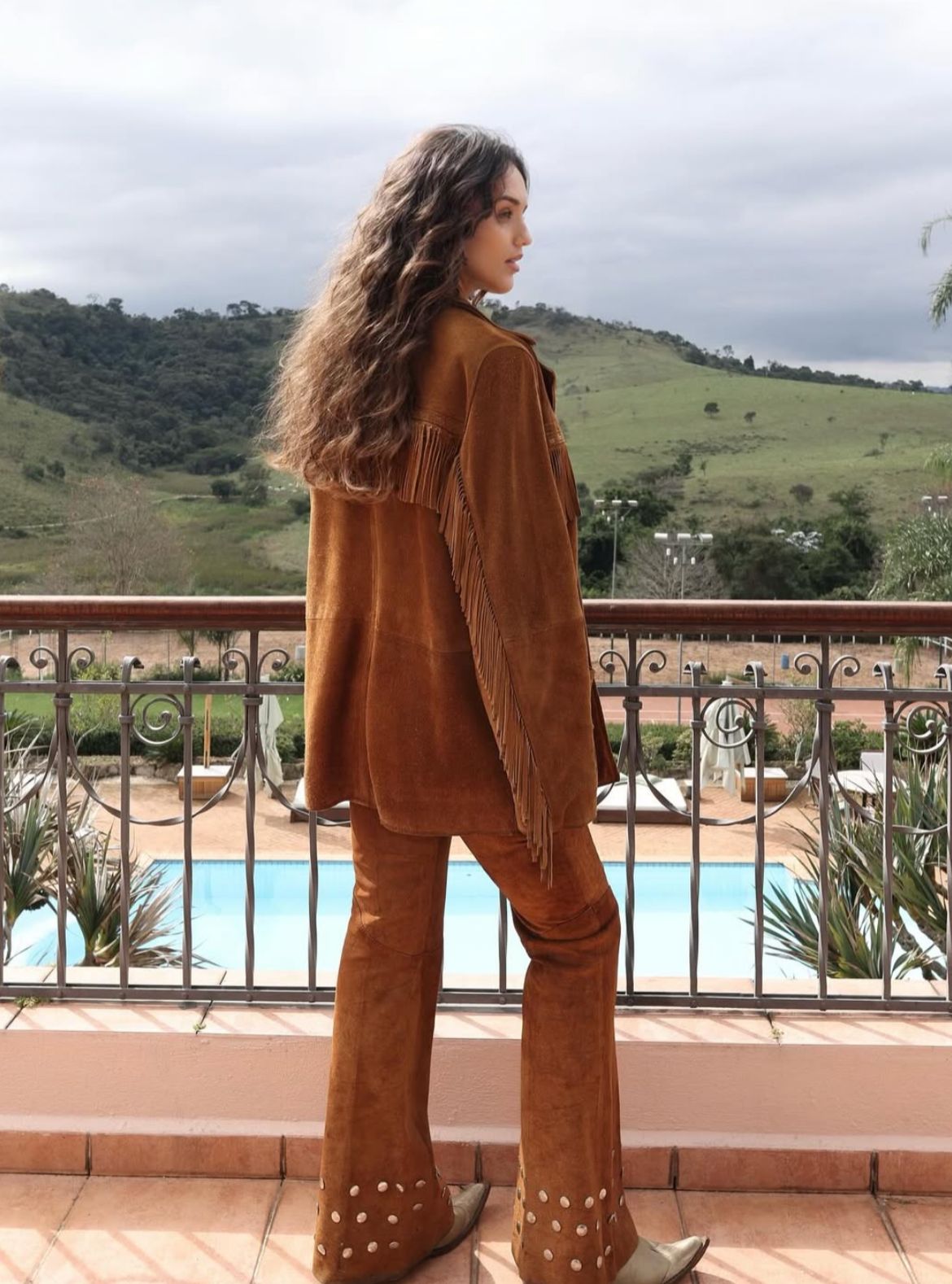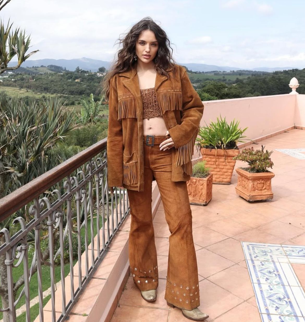 Aos 32 anos, a ex-BBB e apresentadora posou usando um conjunto de camisa, top e calça de camurça, com pegada country. Na foto a mamãe do ano foi clicada com as mãos carinhosamente apoiadas sobre a barriga.  “Favorite skin”, escreveu na legenda.