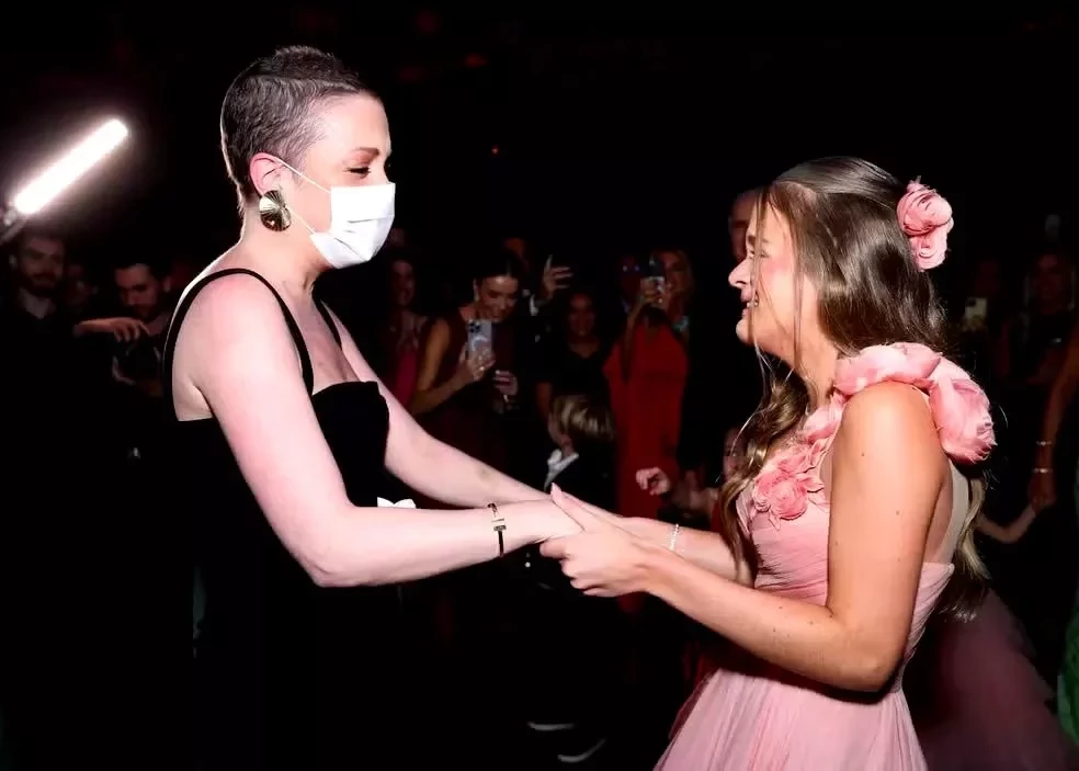 Fabiana Justus, irmã mais velha de Rafaella, marcou presença na festa usando uma máscara facial, uma medida de proteção necessária devido ao tratamento contra a leucemia, que começou em janeiro deste ano.