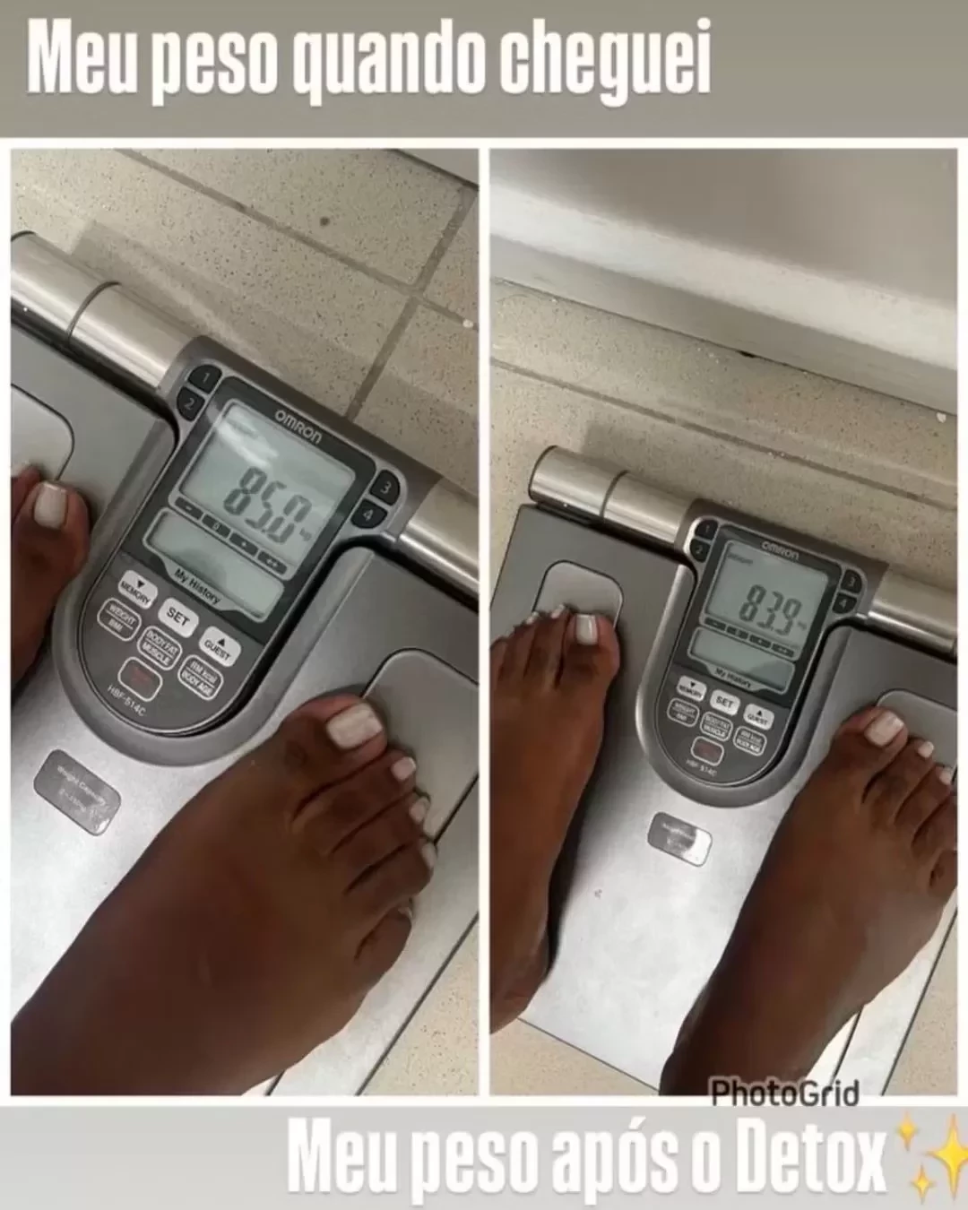 Aos 24 anos, a baiana compartilhou que perdeu 1,1 kg por meio de um tratamento detox ortomolecular, apresentando fotos comparativas do “antes” e “depois”.