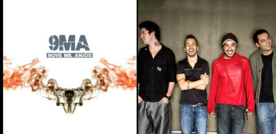 Banda de rock, chamada 9 Mil Anjos que Junior Lima (segundo da esquerda para direita) participou no período de 2008-2009. Foto: Reprodução/Youtube
