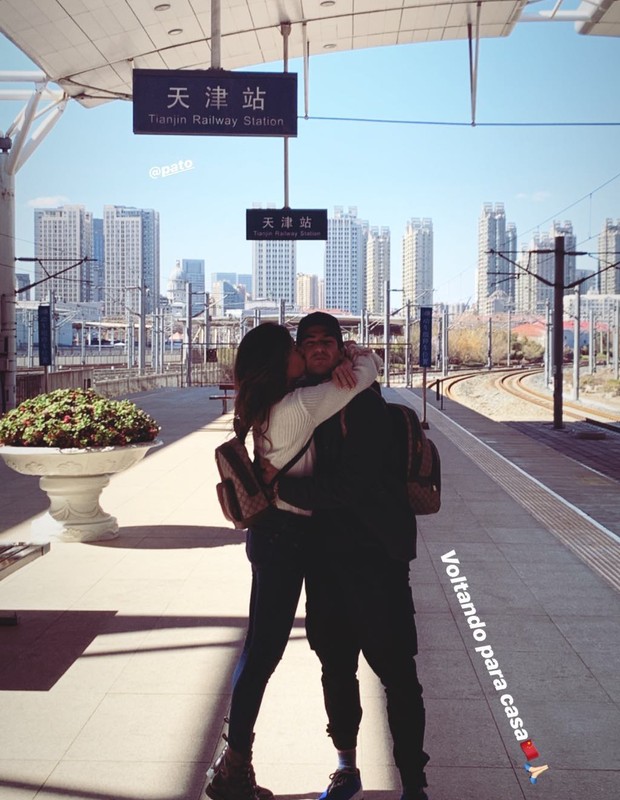 Rebeca Abravanel compartilhou Stories neste sábado (16) ao lado do amado Alexandre Pato. A filha de Silvio Santos foi pessoalmente buscar o namorado que joga no país para voltarem ao Brasil. "Voltando para casa", festejou.