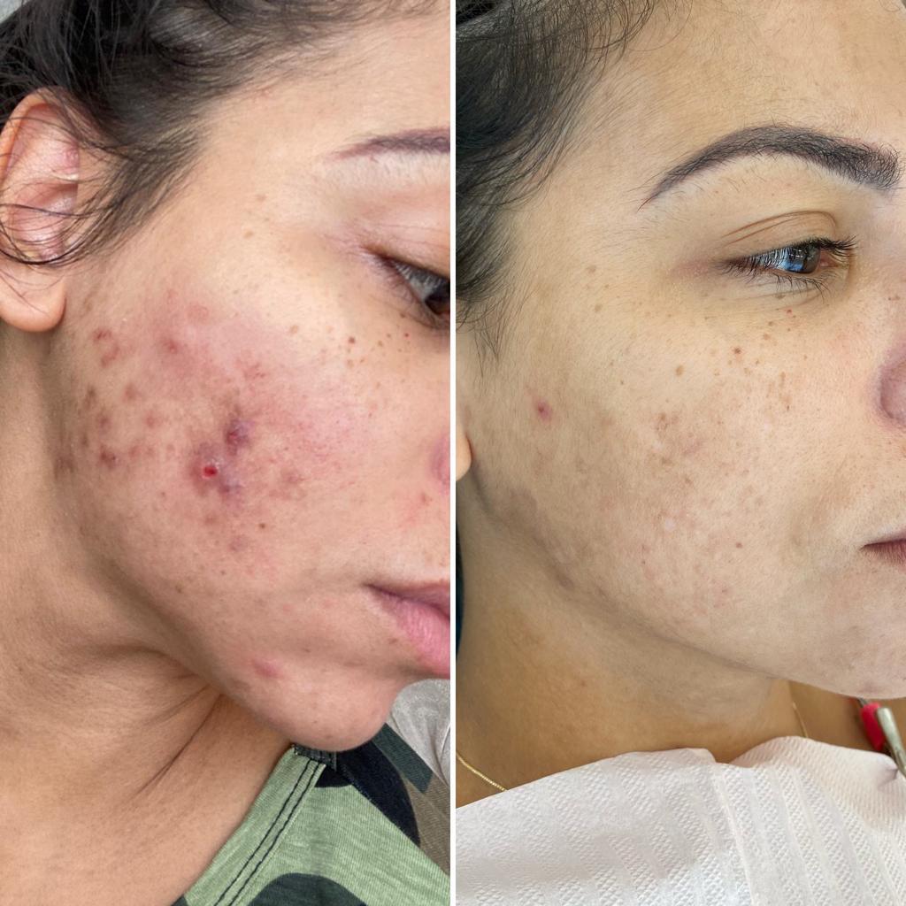 Esse não é o resultado final ainda, ela segue ainda em tratamento mas é muito perceptível os ganhos que tivemos em relação a qualidade da pele.” Contou a Dra. Isrraela Massena