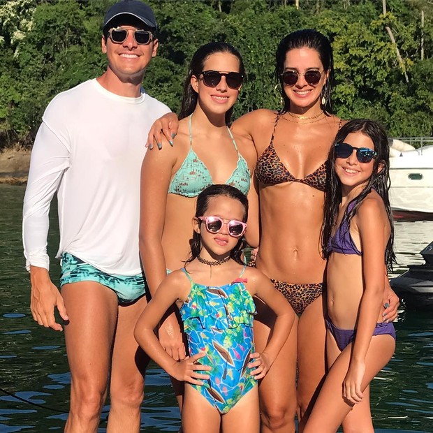 Na imagem, o casal ainda aparece com as três filhas (Clara, de 13 anos, Maria, de 10, e Helena, de 6).