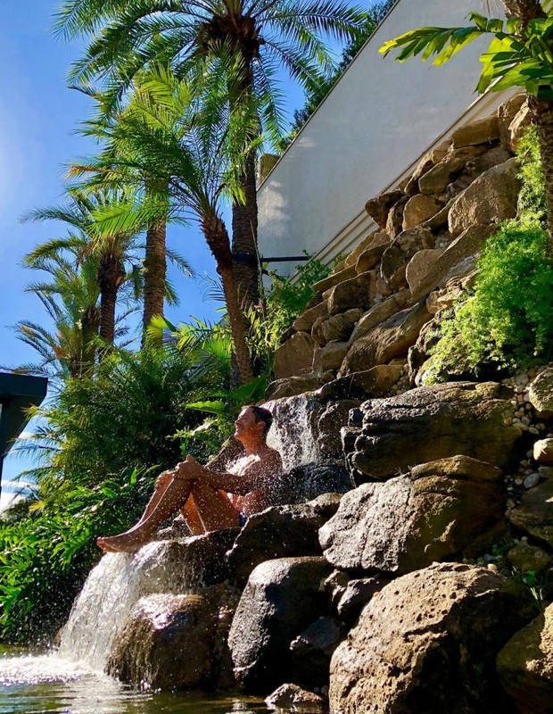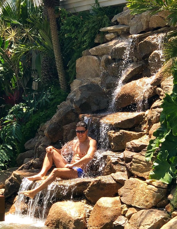 Rodrigo Faro mostrou que seu domingo (8) está uma delícia e postou uma foto tomando banho na cachoeira que tem em sua mansão, onde mora com a mulher, Vera Viel, e as três filhas, Clara, Maria e Helena. As informações são da Quem.