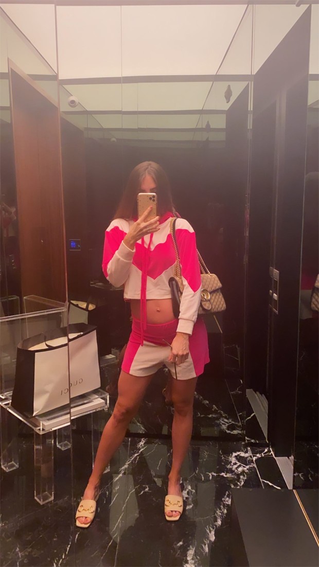 Na imagem, Romana aparece de shortinho e cropped, deixando à mostra a barriga de 29 semanas de gravidez.
