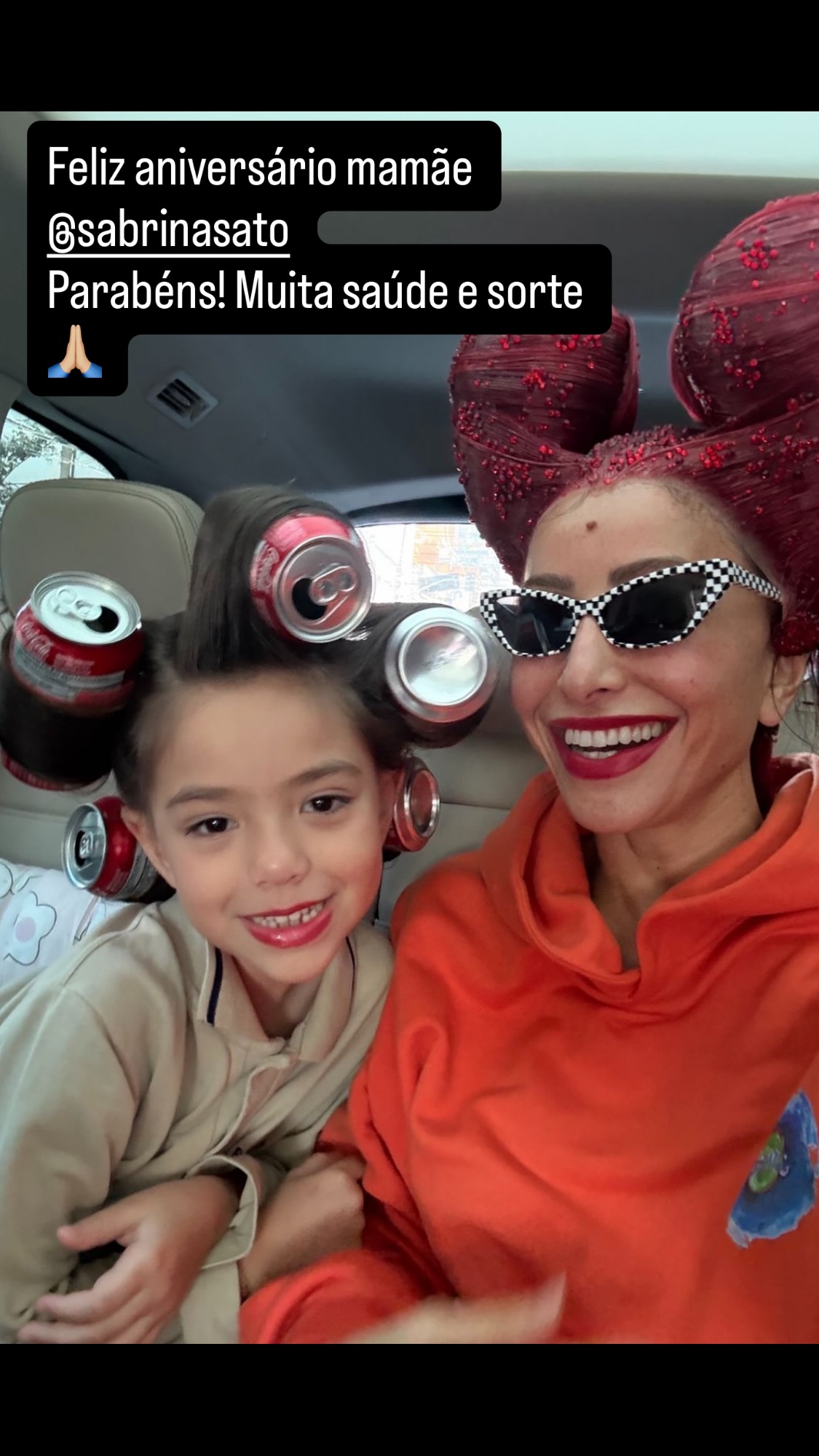 A apresentadora Sabrina Sato que está completando 45 anos de vida nesta quarta-feira (4), ganhou uma homenagem inusitada do ex-marido, Duda Nagle. O empresário compartilhou um stories da apresentadora com a filha do ex-casal, Zoe, e desejou felicidades para a aniversariante. “Feliz aniversário, mamãe Sabrina Sato. Parabéns! Muita saúde e sorte”, escreveu ele.