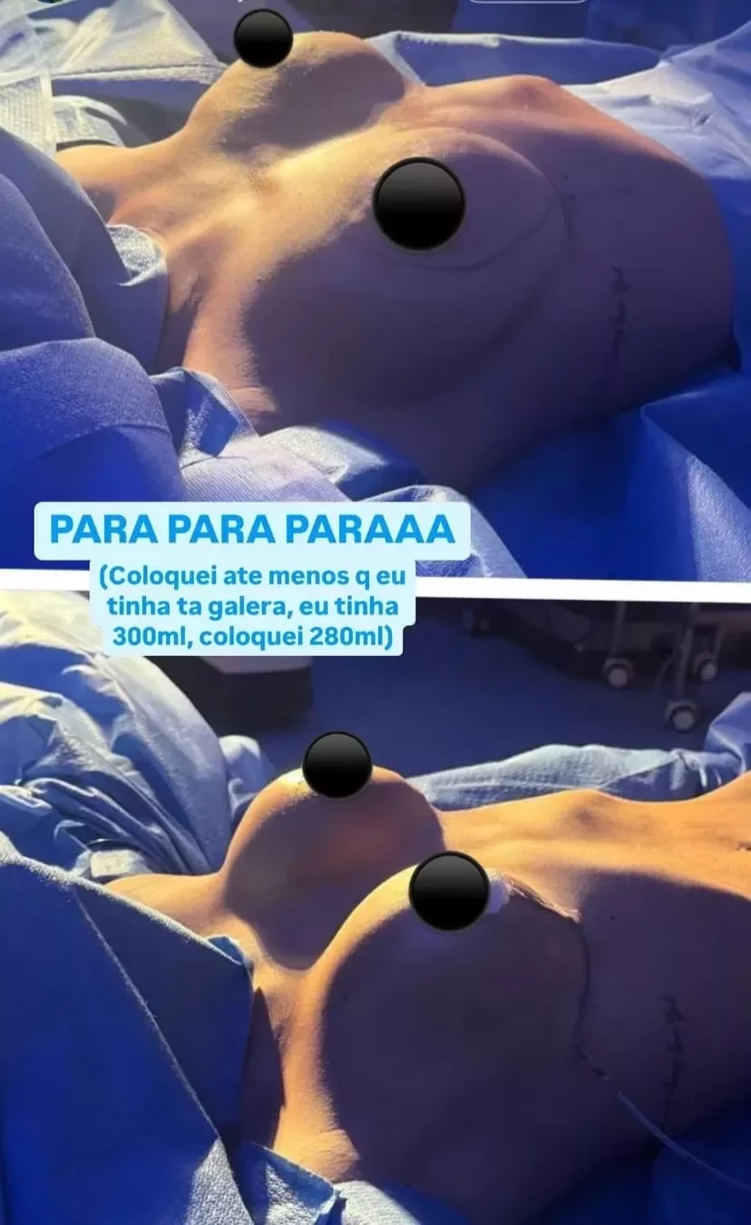 "É provável que ela tenha alta amanhã. Quando sair do hospital, precisará fazer drenagem linfática com nossa equipe e evitar esforço físico intenso. Ela precisa ficar 30 dias sem musculação", esclareceu.