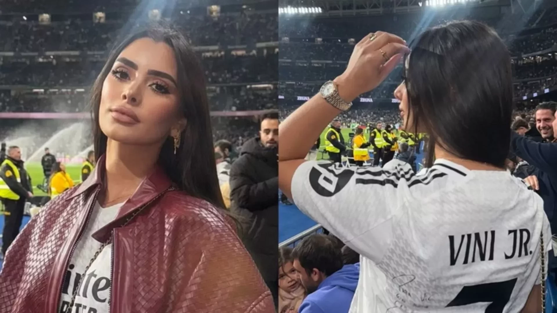 Nos últimos dias, Victoria Ruiz esteve presente na partida entre Real Madrid e Atlético Madrid, assistindo ao jogo de um dos assentos mais próximos ao campo. A modelo registrou o momento e compartilhou as imagens em suas redes sociais. Em algumas das fotos, ela aparece vestindo uma camisa do time representado pelo brasileiro, que traz o nome de Vini Jr. e está assinada.