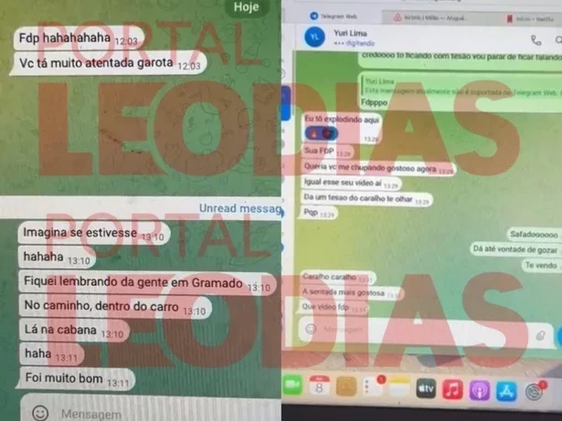 “Você está muito atentada agora. Fiquei lembrando da gente em Gramado, no caminho, dentro do carro, lá na cabana. Foi muito bom!”, escreveu ele via WhatsApp no dia 8 de julho. Em sua resposta, a mulher disse que tem vídeos de sexo entre eles guardados.