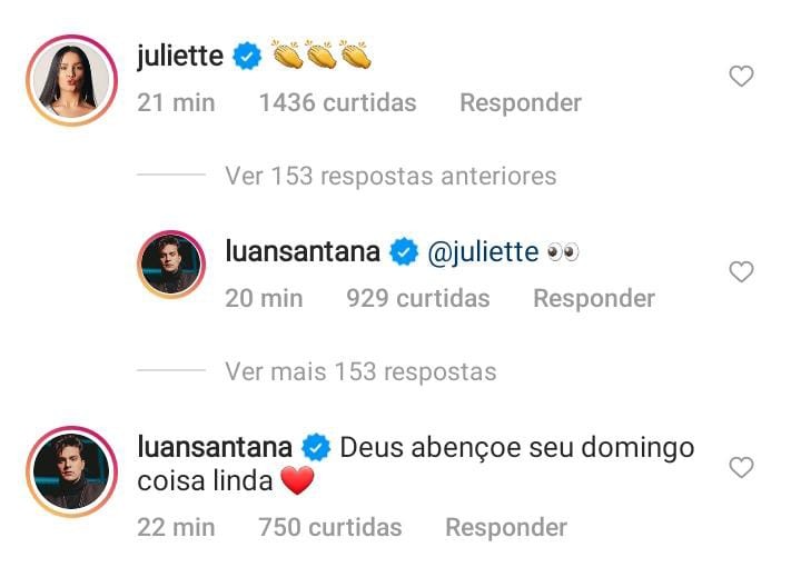 Quem também comentou a publicação com emojis de aplausos foi Juliette. O comentário da ex-BBB e maquiadora foi curtido por mais de 400 pessoas em apenas 4 minutos e os fãs comentaram. “Vai que é tua, Ju”, brincou uma. “Investe, Ju, investe”, recomendou outra. Confira a publicação: