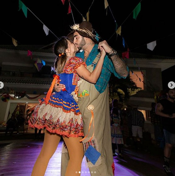 Os dois, que se vestiram de espantalhos, dançaram juntinhos e trocaram beijos na festa. "Fomos/somos muito felizes", escreveu ele na legenda. Anitta retribuiu com uma declaração de amor. "Somos. Te amo tanto!", escreveu a cantora.