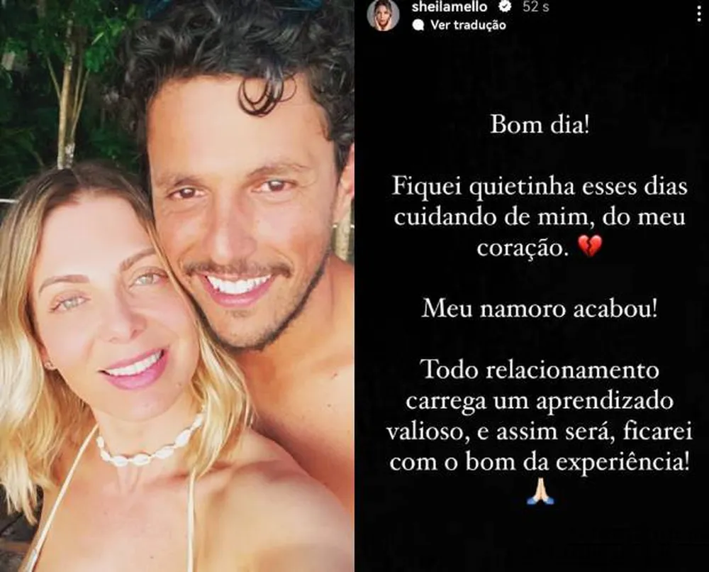 Sheila Mello, de 44 anos, anunciou em seu Instagram na manhã desta segunda-feira (31) o fim do namoro com tenista João Souza, mais conhecido como Feijão, de 34. A dançarina, eterna 'loira do Tchan', fez um post explicando que esse foi o motivo de estar sumida das redes nos últimos dias.